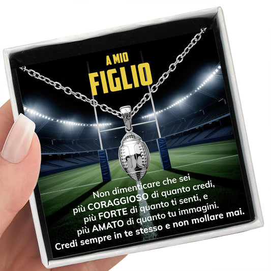 MetaBoy™ Collana pallone da Rugby con dedica "A mio figlio"