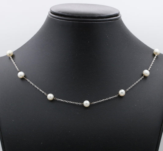 16" Vintage 14K White Gold Cultured Pearl Station Necklace