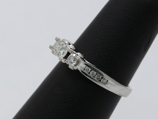 14K White Gold Three Diamond Engagement Ring