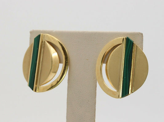 1970's 18K Yellow Gold Malachite Clip Earrings