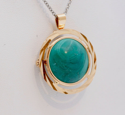 18K Yellow Gold Italian Malachite Pendant Brooch