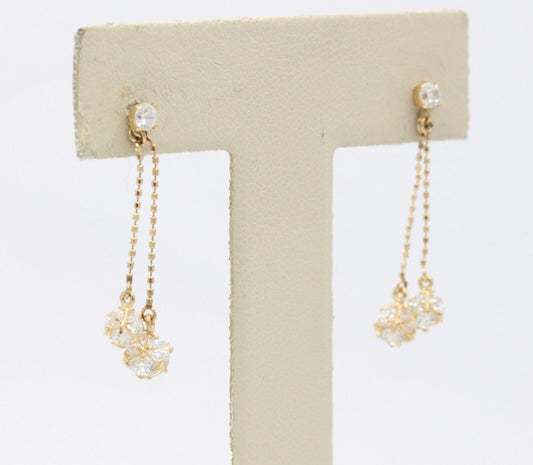 14K Yellow Gold Cubic Zirconia Dangling Drop Earrings