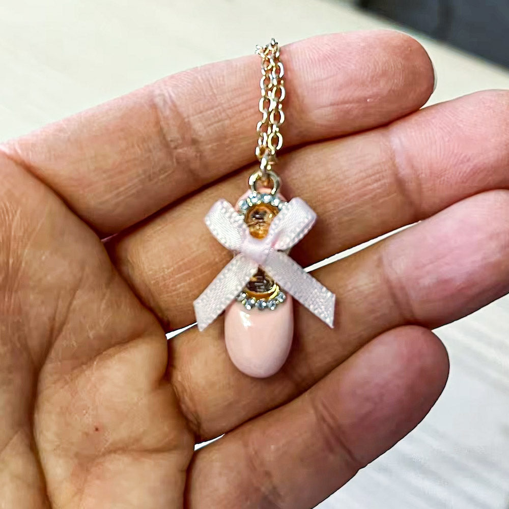 Questa splendida collana con scarpetta da ballo rosa è il regalo perfetto per chi desidera donare a una giovane ballerina un simbolo di grazia e dedizione. Non è solo un gioiello, ma un messaggio di passione e forza che l’accompagnerà ogni giorno, sul palcoscenico come nella vita.