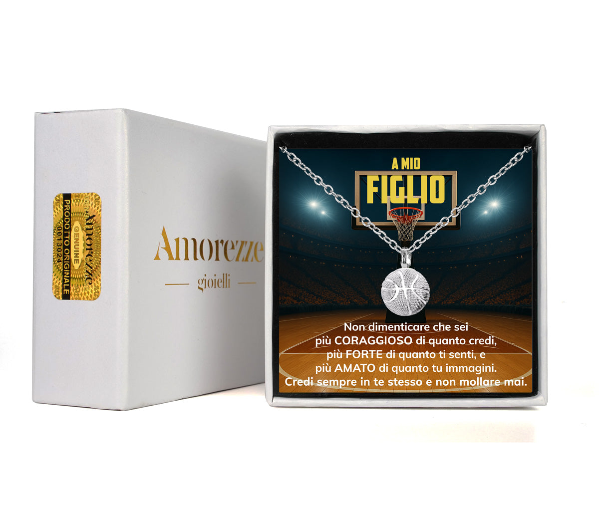 Il basket insegna coraggio, costanza e sogni da inseguire: questa collana è il simbolo di quella forza che lo spinge a dare il meglio, in campo e nella vita.