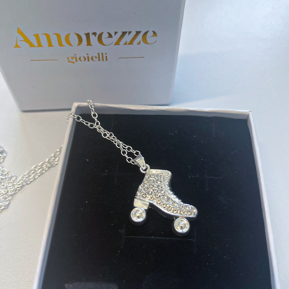 "Questa collana con pattine a rotelle in argento è diventata il mio accessorio preferito, non la tolgo mai! La indosso a scuola e durante le prove perché mi dà sempre una carica speciale. Inoltre, grazie al biglietto che l’accompagna, ho capito quanto i miei genitori credano in me e vogliano farmi sentire forte, coraggiosa e amata."